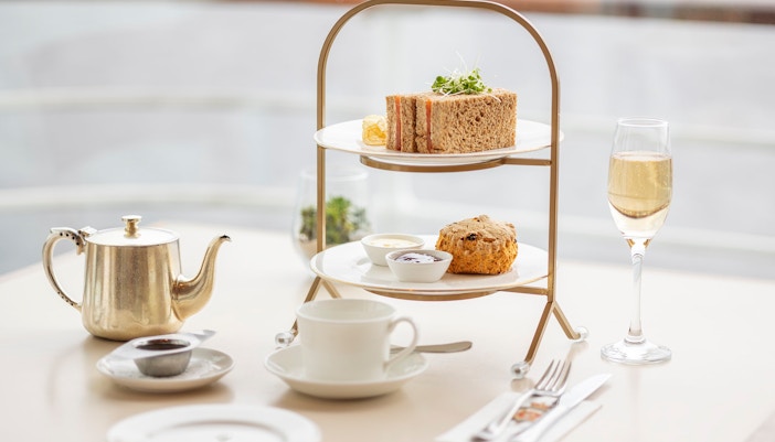 Sit in a light-filled space overlooking Leith harbour, where simple tables and large windows create a relaxed setting to pause, with teas, coffee, and scones available separately during your self-paced visit.